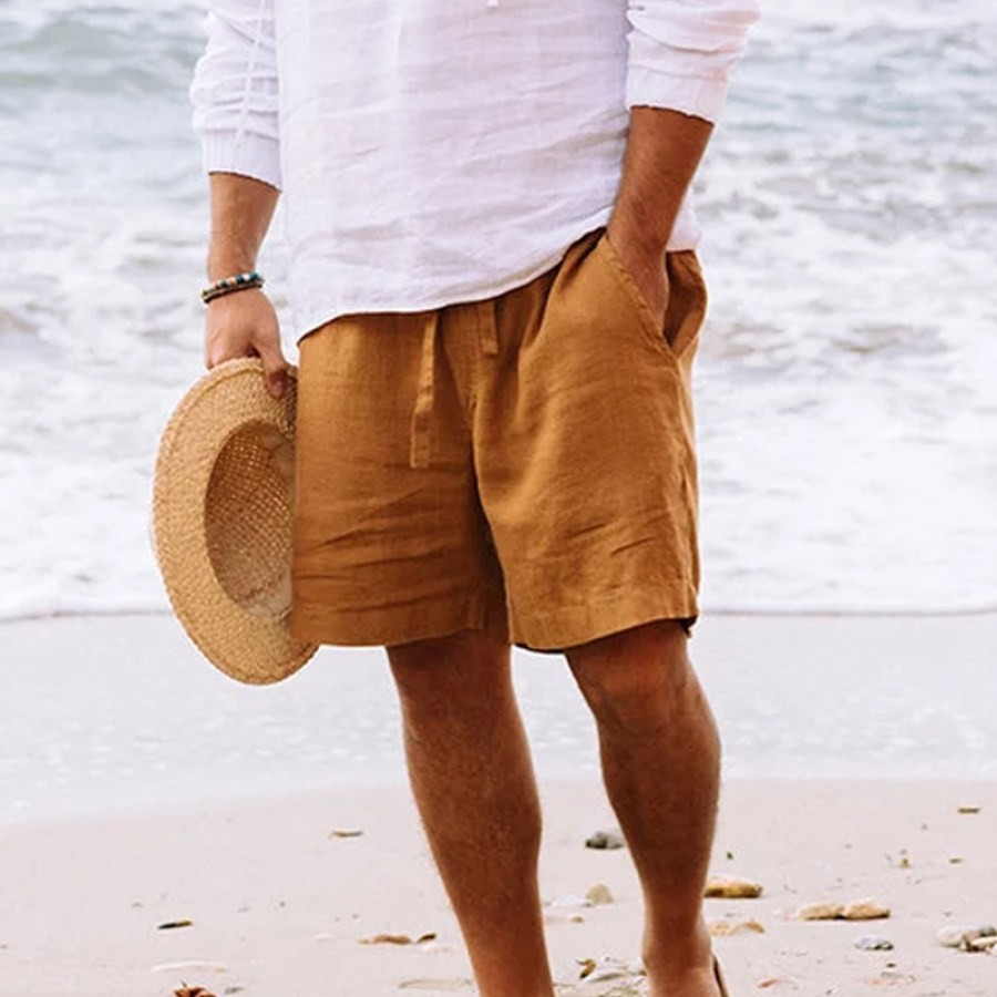 Mens Beach Loose Drawstring Linen Casual Shorts