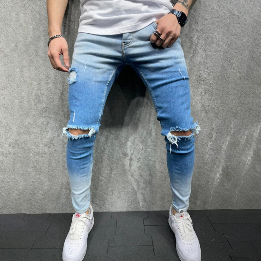 Mens Casual Ripped Gradient Jeans