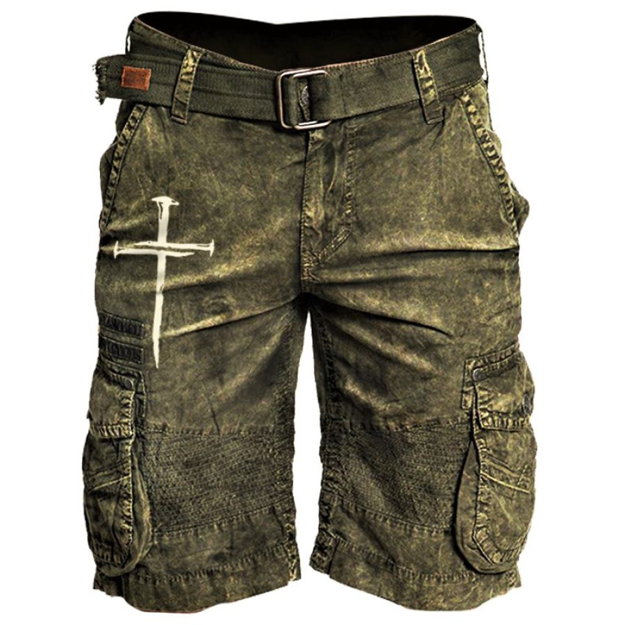 Mens Cross Printed Casual Tactical Shorts