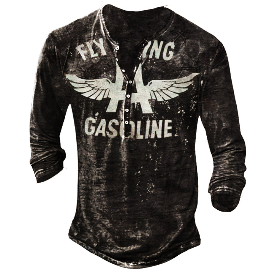 henleys,mens fashion flying gasoline print top