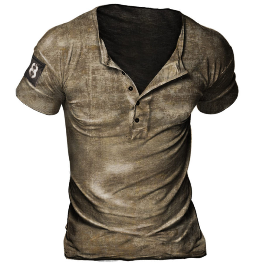 Mens Fashion Retro Tactics Deep V Neck T-Shirt