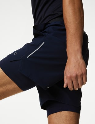 Mens Goodmove Two Layer Drawstring Zip Pocket Shorts - Navy, Navy