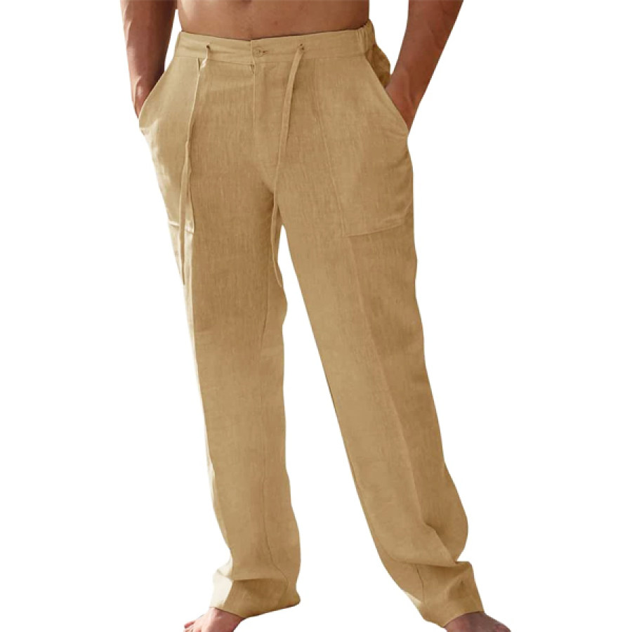 Mens Linen Pants Drawstring Pocket Beach Pants