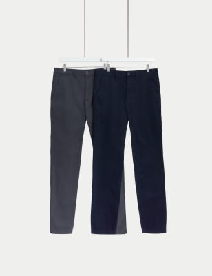 These cotton-rich stretch chinos are ideal for work or weekend looks. Handy two-pack, both designed in a classic regular fit with added stretch for unrestricted movement. M&S Collection: easy-to-wear wardrobe staples that combine classic and contemporary styles.