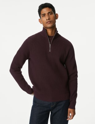 Keep it cool, contemporary and casual with this cosy cotton-blend jumper. The half-zip funnel neck ensures you feel extra warm in cold weather. Snug-fitting stretchy ribbed trims complete the understated design of this cold-weather layering classic.n n M&S Collection: easy-to-wear wardrobe staples that combine classic and contemporary styles.
