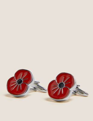 Mens M&S Collection Manschettenknöpfe im Mohnblumendesign - Rot, Rot