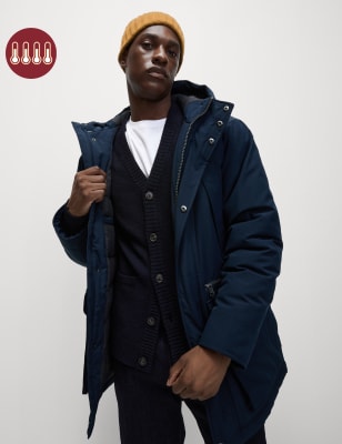 Stay warm and dry in style in this modern take on the classic parka jacket. It's a comfy regular fit to make layering up easy, and you can pull the drawstring hood tight when the temperature drops. Our water-repellent Stormwear™ finish keeps you dry in light rain showers and the lightweight thermal padding locks in heat too. The covered popper and zip fastening also helps to keep out the chill. Five front pockets keep your essentials and valuables secure and easily accessible. n n M&S Collection: easy-to-wear wardrobe staples that combine classic and contemporary styles.