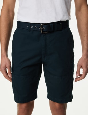 Mens M&S Collection Pure Cotton Ripstop Textured Belted Cargo Shorts - Navy, Navy