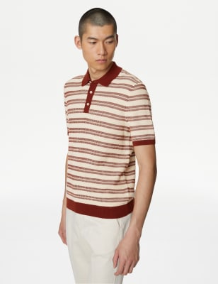 This sharp-looking knitted polo shirt is a great choice for smart-casual occasions. It's made from subtly textured pure cotton for comfort and breathability. The contemporary horizontal striped design is complemented by the plain collar with classic three-button fastening.n M&S Collection: easy-to-wear wardrobe staples that combine classic and contemporary styles.
