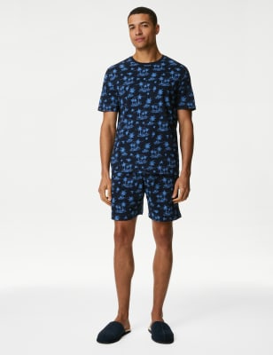 These pyjamas are made from pure cotton for a breathable feel. Short-sleeved top and shorts with a drawstring waist and handy side pockets. Both pieces feature a fun all-over tropical print.n M&S Collection: versatile styles in modern shapes with smart innovations, for wear-everywhere comfort.
