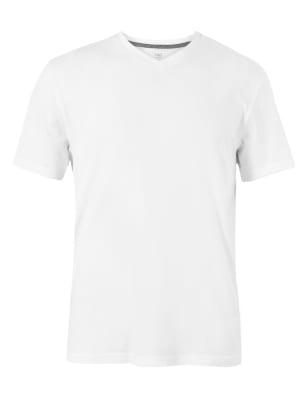 Mens M&S Collection Pure Cotton V-Neck T-Shirt - White, White