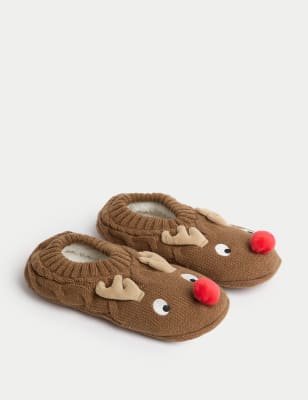 Keep your toes toasty with these fun slipper socks. Non-slip grips on the soles help to prevent any slips. Complete with a festive reindeer face and 3D antlers.n n M&S Collection: easy-to-wear wardrobe staples that combine classic and contemporary styles.