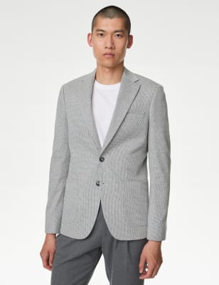 This cotton-rich blazer is a great choice for smart-casual occasions. It's made in a comfortable tailored fit with a two-button fastening for a timeless look. The textured puppytooth fabric and flap pockets add a classic touch, while twin vents at the back ensure freedom of movement. n n M&S Collection: easy-to-wear wardrobe staples that combine classic and contemporary styles. Our suits come in a suit carrier to keep it looking fresh while on the move.