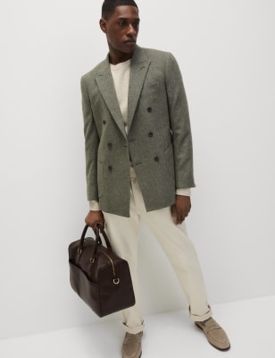 This warm and durable wool-blend blazer is made from twill fabric for a subtly textured look and feel. It's cut to a streamlined tailored fit, with a smart double breasted buttoned front. Peak lapels with a traditional buttonhole, two roomy patch pockets and the jetted breast pocket add extra polish to this made-for-the-races piece. M&S Collection: easy-to-wear wardrobe staples that combine classic and contemporary styles. Our suits come in a suit carrier to keep it looking fresh while on the move.