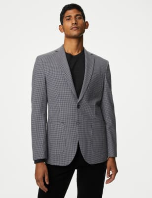 Stand out on any smart occasion with this single-breasted checked blazer. It's made with twin back vents and added stretch in the fabric for freedom of movement. The jacket is unlined for a lightweight feel. Patch pockets keep your essentials handy and notch lapels add a stylish touch. nM&S Collection: easy-to-wear wardrobe staples that combine classic and contemporary styles.