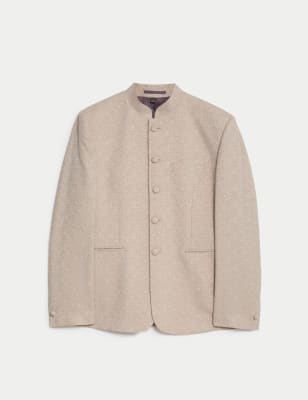 This textured jacquard jacket combines the traditional with the contemporary. It's designed in a smart single-breasted style, with a smart Nehru collar and covered buttons down the front and on the cuffs. This piece is lined for comfort. Jetted pockets on the waist add the finishing touches. nM&S Collection: easy-to-wear wardrobe staples that combine classic and contemporary styles.