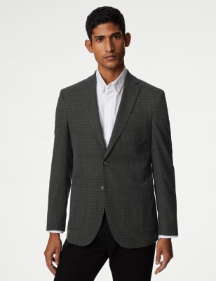 Mens M&S Collection Windowpane Check Stretch Blazer - Charcoal Mix, Charcoal Mix