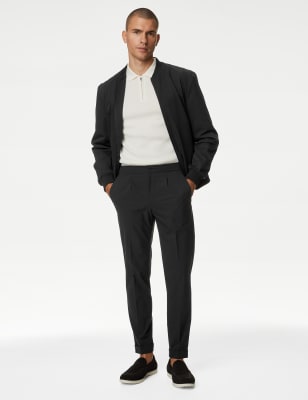 Mens M&S X ENGLAND COLLECTION Performance Single Pleat Trousers - Black, Black