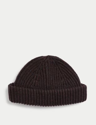 A touch of wool brings extra cosiness to this beanie hat, designed exclusively in collaboration with Ian Wright. The classic fisherman shape is knitted with a chunky rib stitch. Flecks of colour in the yarn deliver a distinctive finish.nnM&S x Ian Wright: Hats, the Wright way.