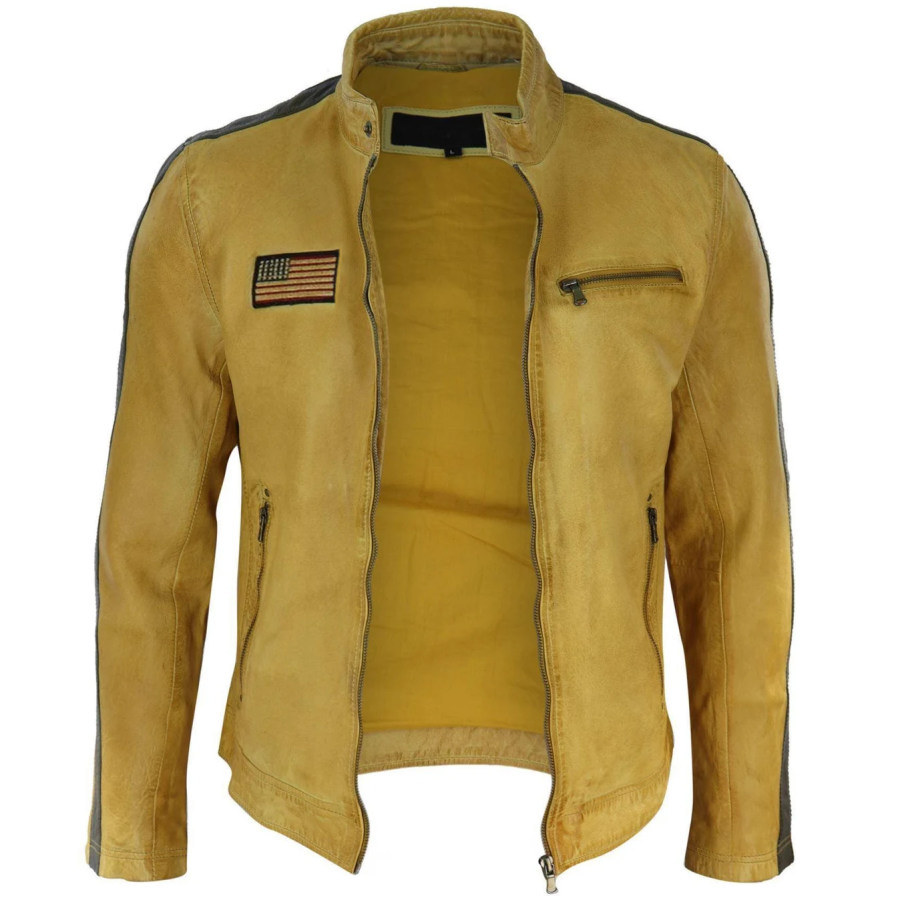 Mens Outdoor Cold-proof Motorcycle Leather Jacket