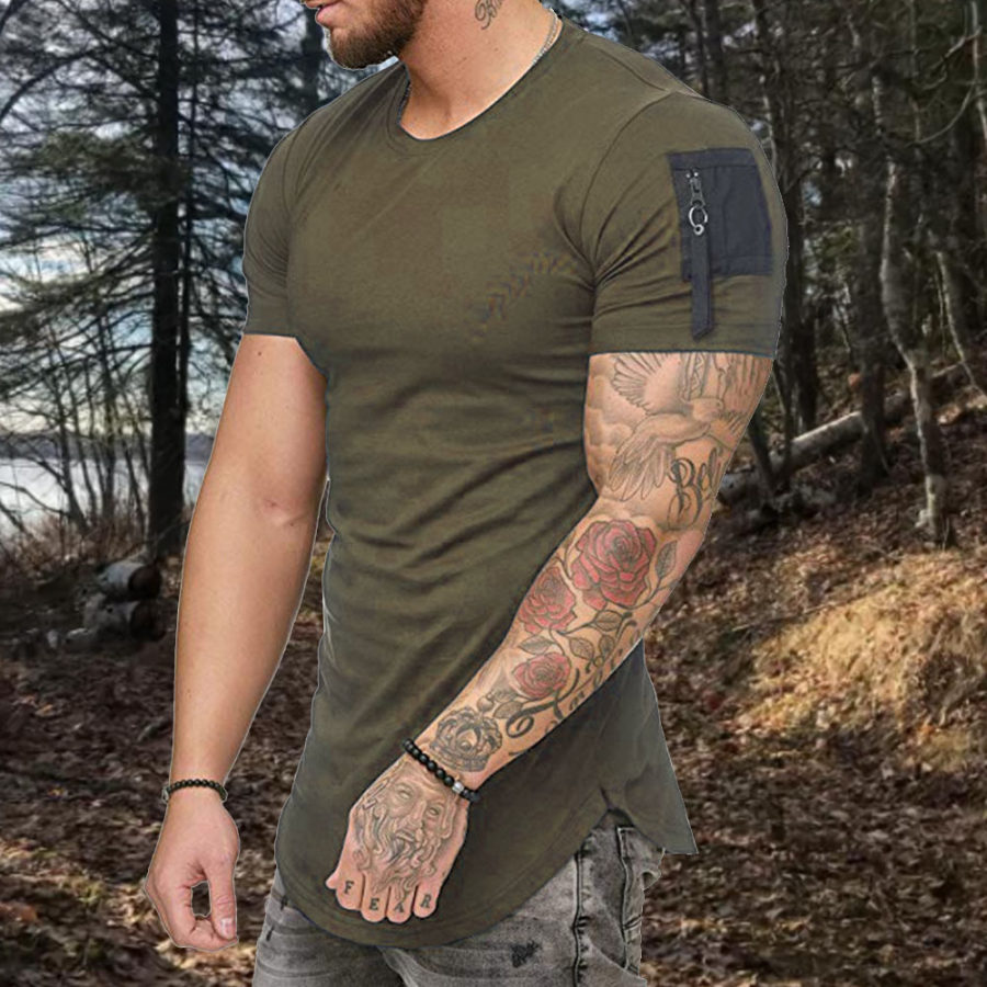 Mens Pocket Stitching Solid Color T-shirt