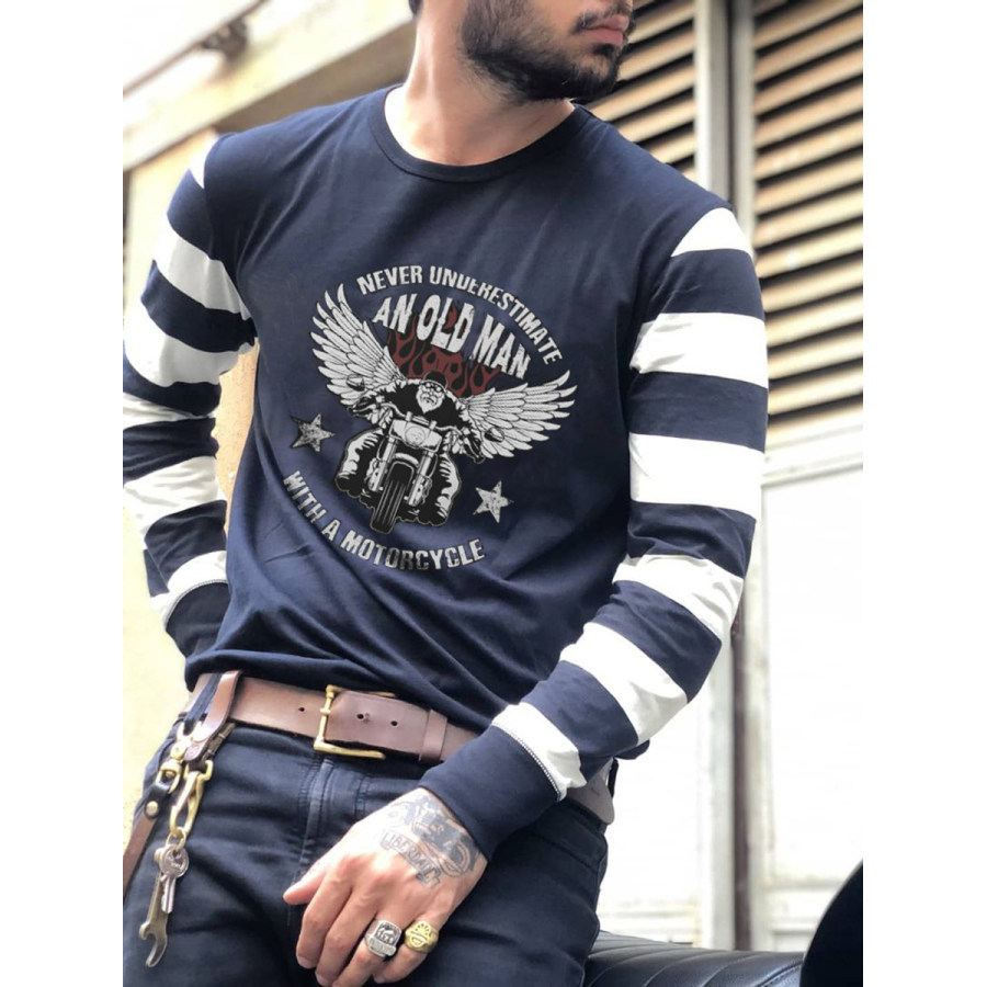 t-shirts,mens retro crew neck stripes long sleeve tops t-shirts