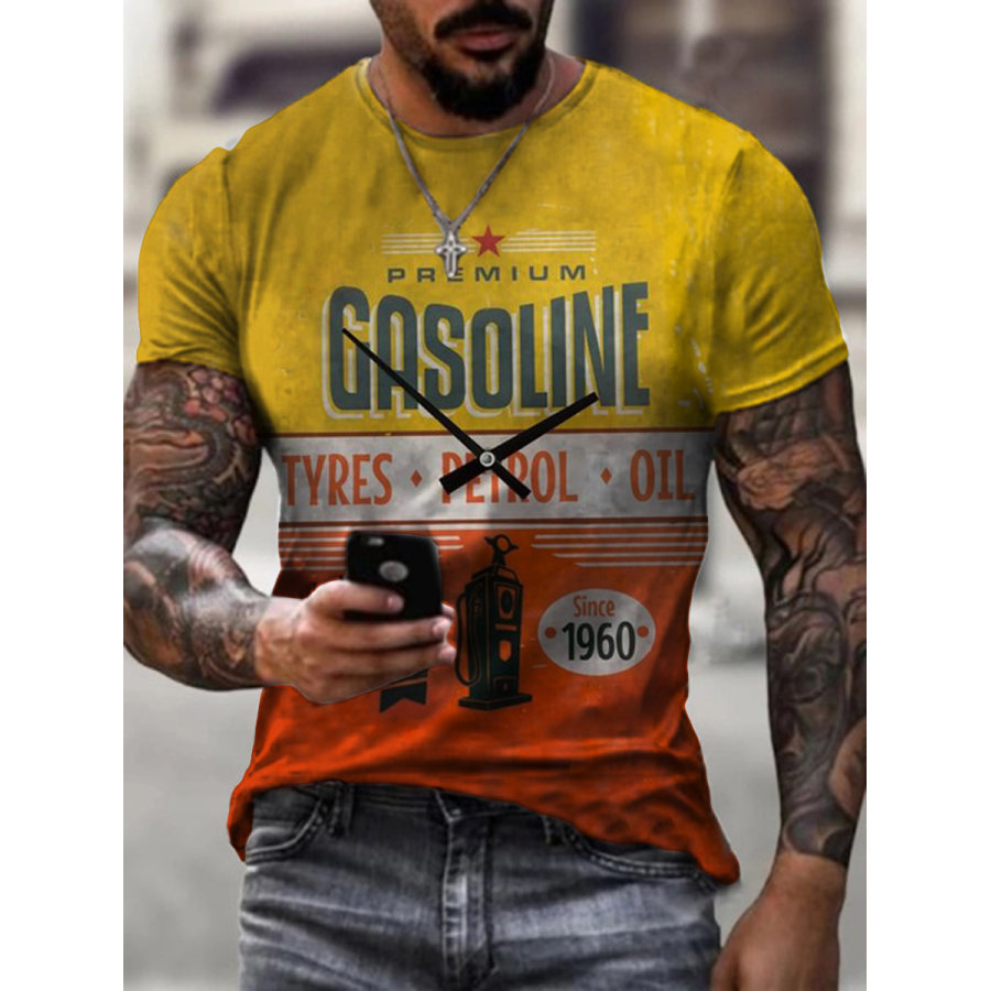 Mens Retro Engine Oil Contrast Print T-Shirt
