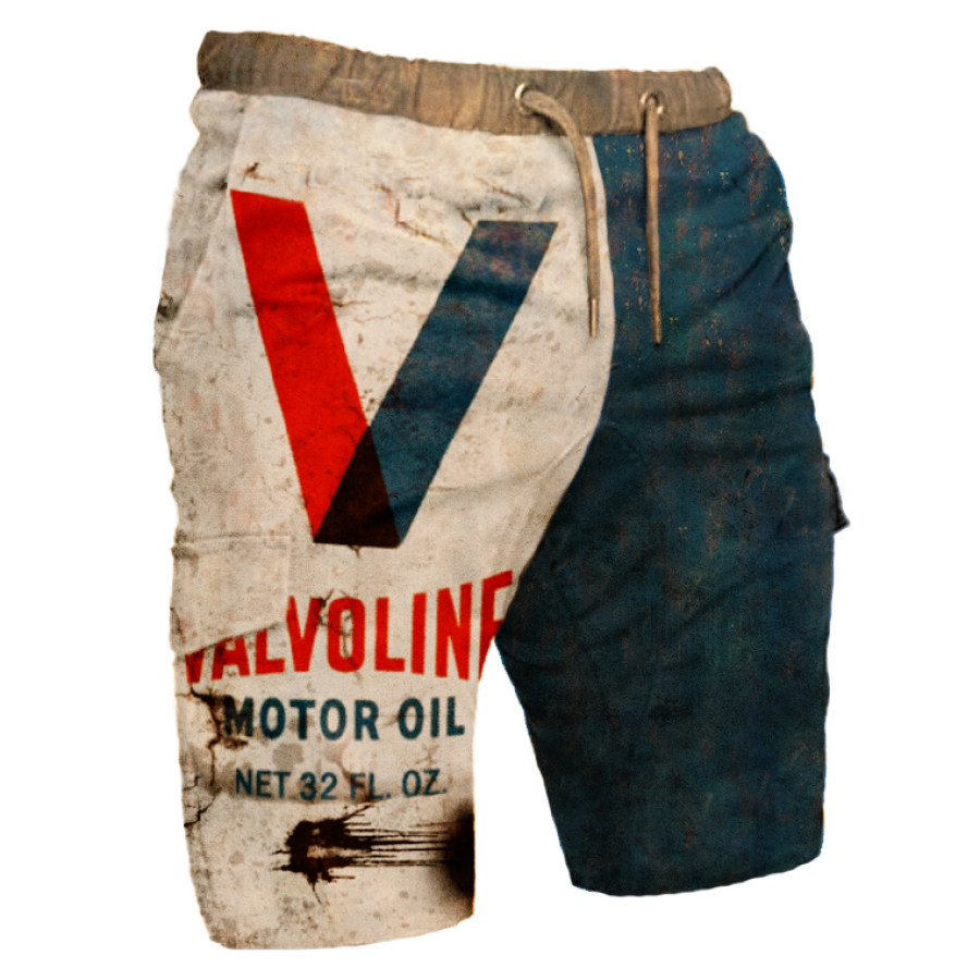 Mens Retro Engine Oil Printed Outdoor Casual Combat Shorts