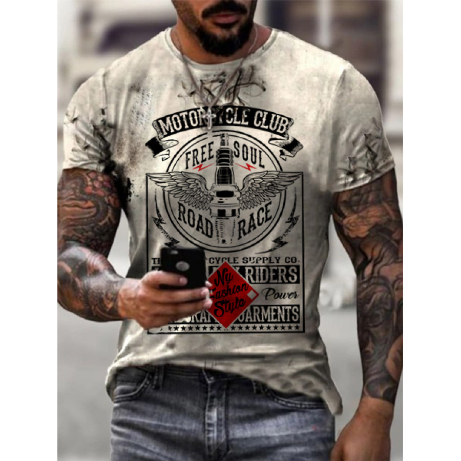 Mens Retro Motorcycle Riding Printed T-shirt