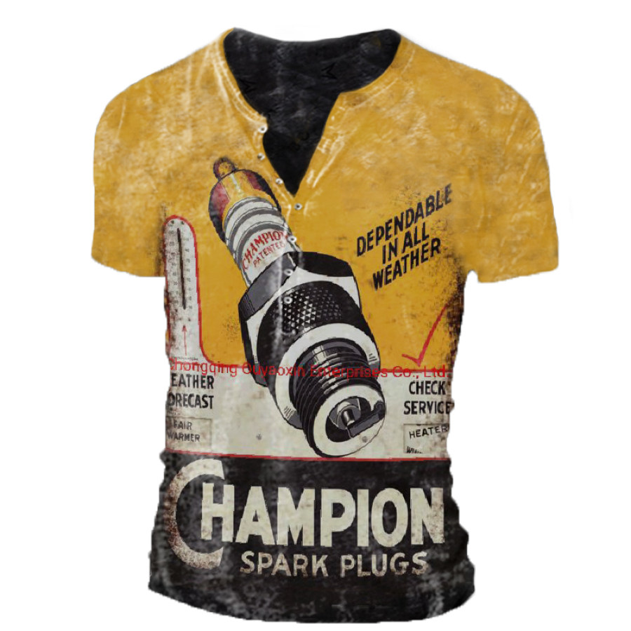 Mens Retro Motorcycle Spark Plug Print Outdoor Combat T-shirt