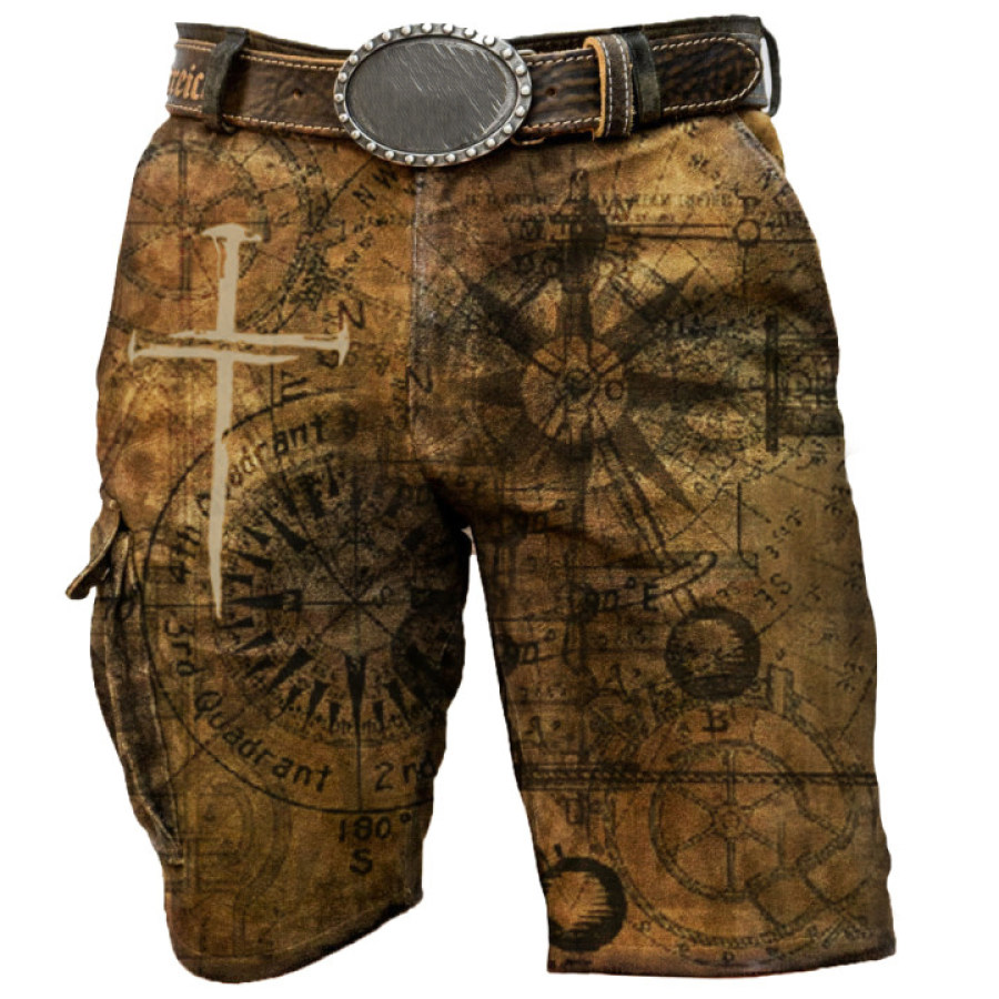 Mens Retro Pirate Nautical Printing Tactical Shorts