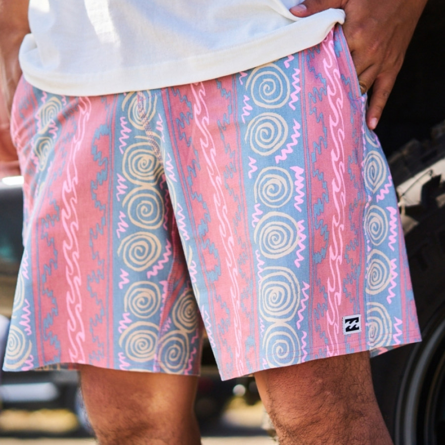 Mens Retro Wave Graphic Summer Beach Surf Shorts
