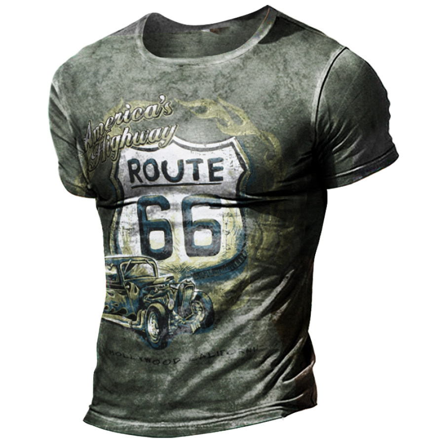 t-shirts,mens route 66 retro print crew neck t-shirt