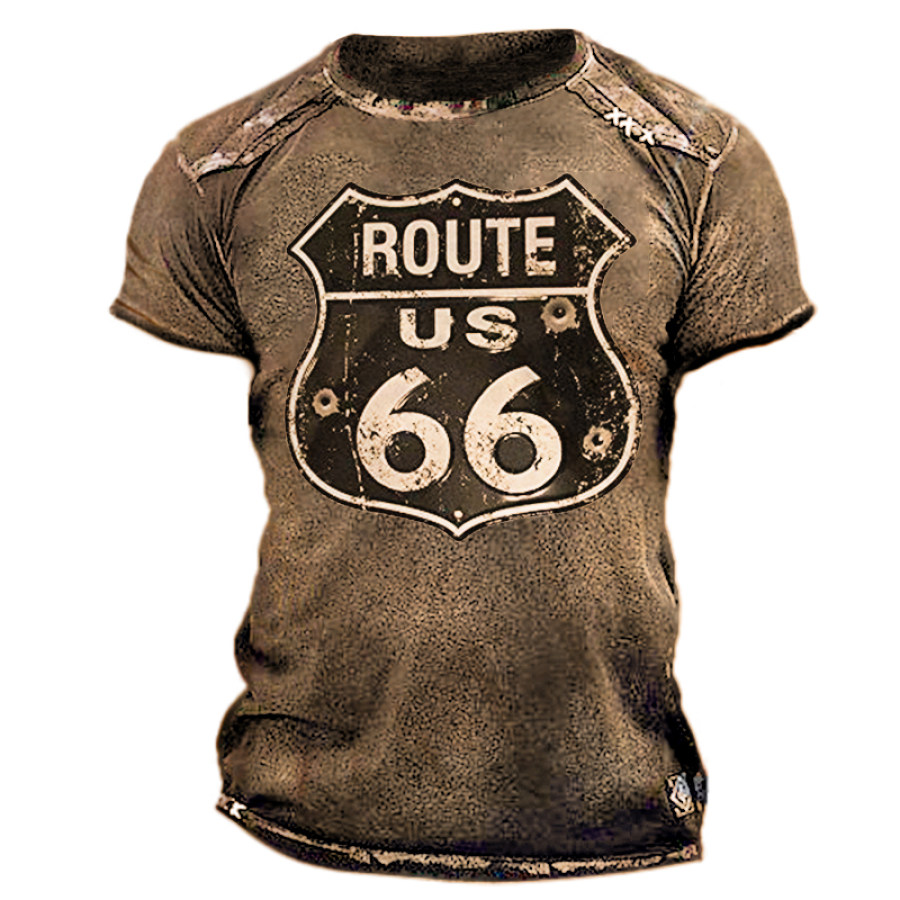 Mens US Route 66 Retro Print T-Shirt