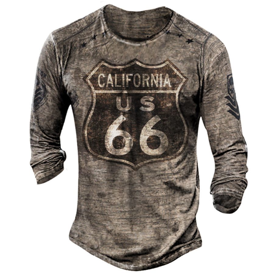 Mens US Route 66 Retro Printed Long Sleeve Top