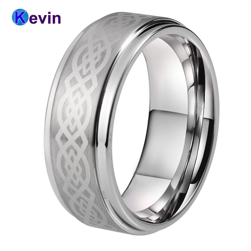 Mens Wedding Band Tungsten Engraved ring Step Edges Comfort Fit