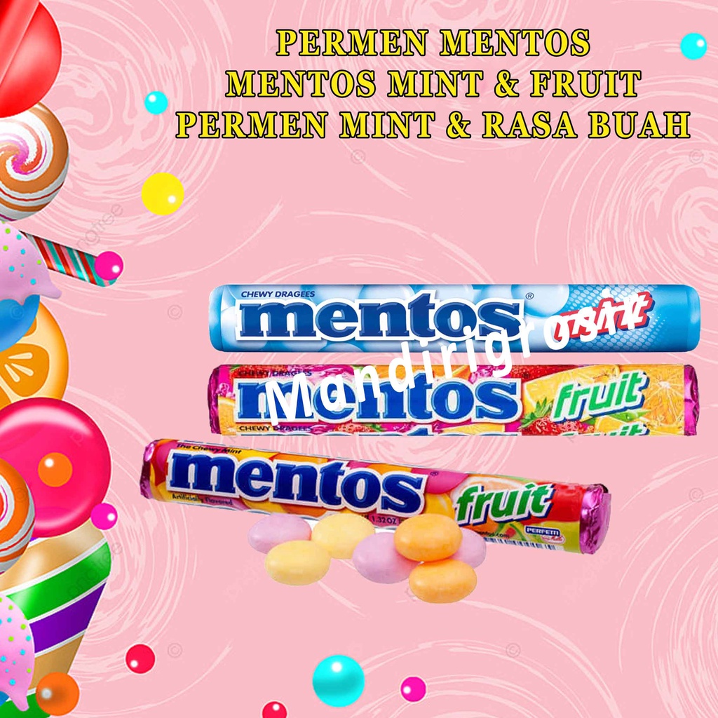 Mentos adalah mint kenyal segar yang luar biasa yang hadir dalam berbagai macam rasa mint dan buah yang menarik. Bentuknya yang bulat unik memadukan rasa, kesegaran, dan fungsionalitas. Permen Buah Mentos. Permen rasa buah Chewy, rasa alami dan artifisial.