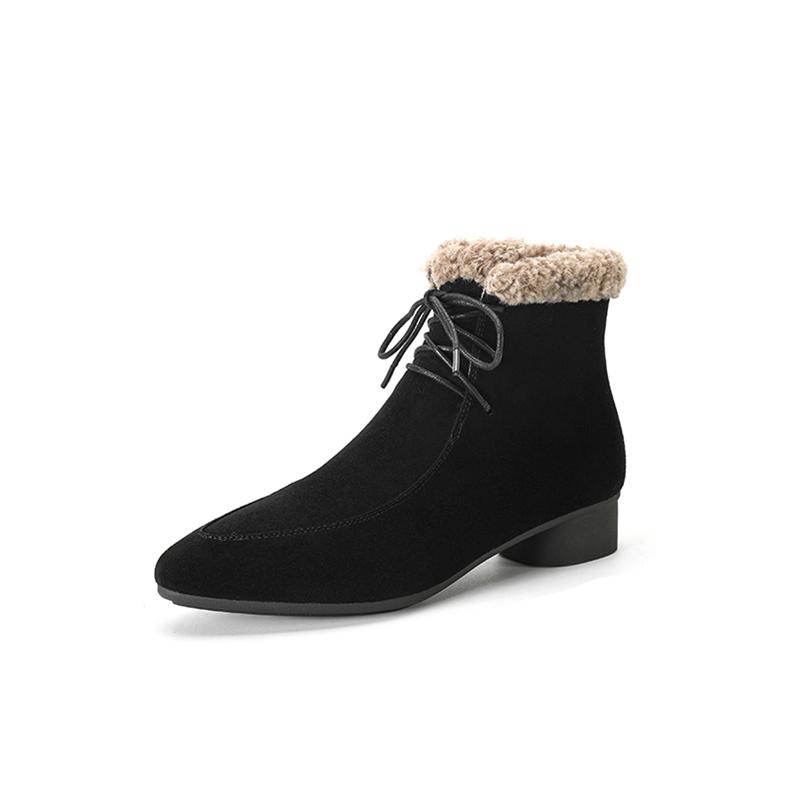 Meotina/женские ботильоны из натуральной кожи, короткие ботинки с круглым носком на низком каблуке и шнуровке, женская модная обувь, зимняя черная, коричневая 41 34 чёрный