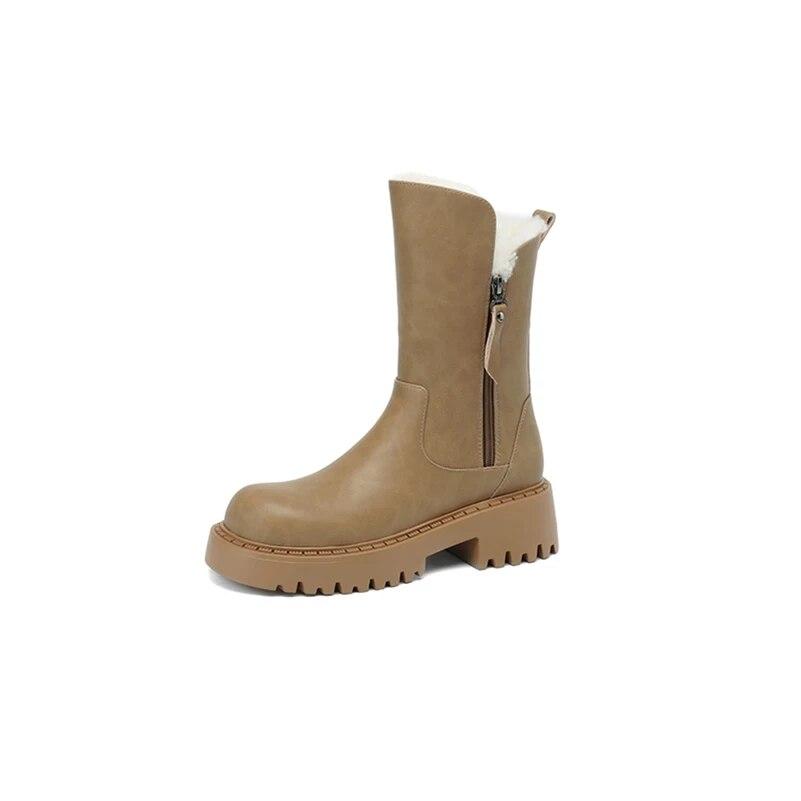 Meotina/женские ботильоны из натуральной кожи, шерстяные короткие ботинки на платформе с круглым носком на толстом среднем каблуке и молнии, женская модная обувь, зимняя обувь 34 миндальный