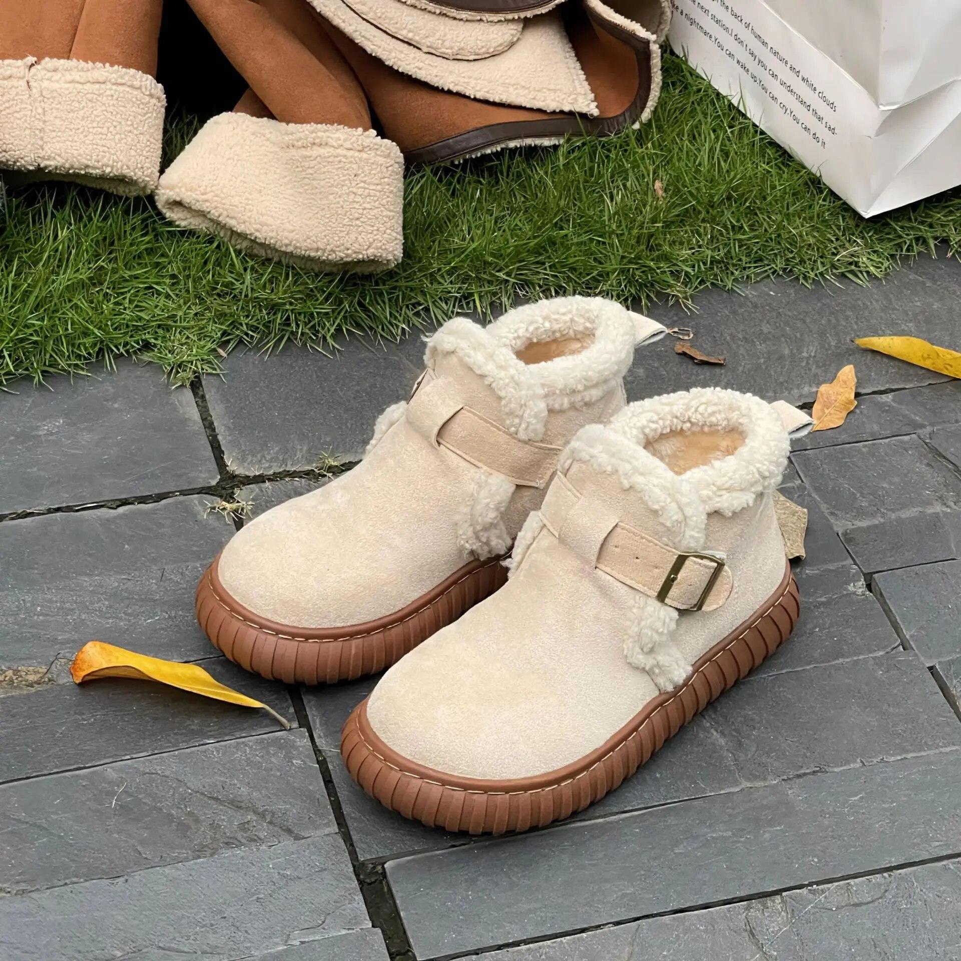 Meotina/женские ботильоны с круглым носком на платформе на плоской подошве с пряжкой на меху, зимние ботинки на меху, лаконичная женская модная обувь, зимняя коричневая, бежевая, 40 35 бежевый