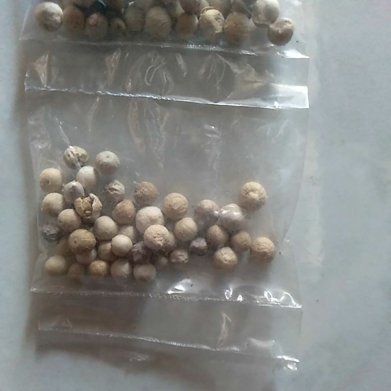 Merica PUTIH / Lada PUTIH | Piper nigrum Mencegah penyakit Parkinson, Menurunkan risiko Alzheimer, Melawan depresi, Mengurangi risiko kejang, Memulihkan stroke, Lada putih membantu mengurangi arthritis, Lada putih dapat mengobati kanker, Lada putih dapat menyembuhkan sakit kepala, Lada putih dapat mengobati batuk, hidung tersumbat, mencegah luka lambung, mengontrol tekanan darah, menjaga kesehatan jantung, mengobati perut kembung, mengobati ketombe. Bisa digunakan sebagai bumbu masak, tinggal dihaluskan/digiling .