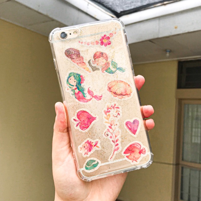 Case dengan stiker mermaid dan resin glitter. Handmade with love and high quality product.