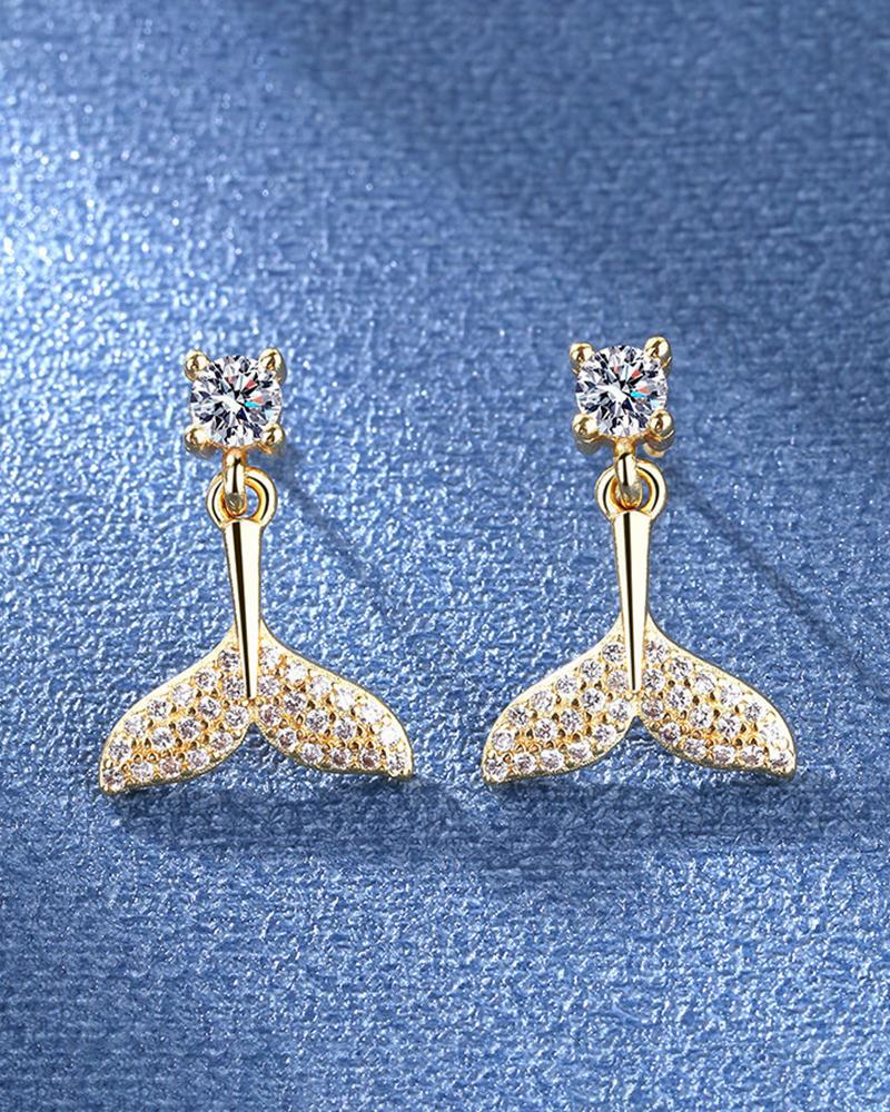 Mermaid Tail Rhinestone Drop Earrings, Silver