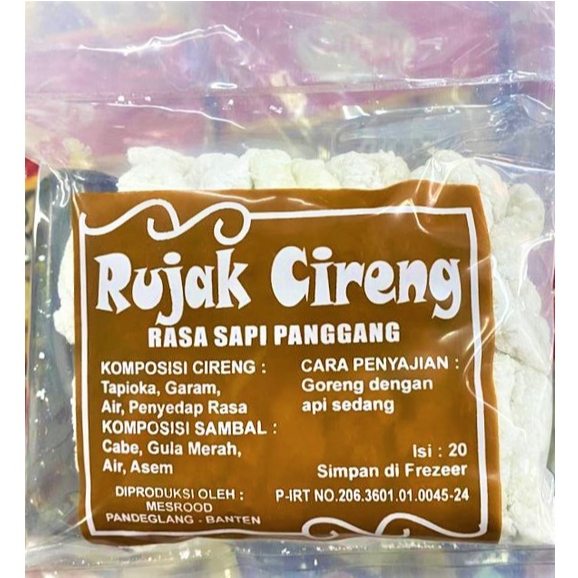 Mesrood Rujak Cireng Rasa Sapi Panggang adalah camilan inovatif yang menggabungkan cita rasa tradisional dengan sentuhan modern. Produk ini terdiri dari 20 buah cireng (aci digoreng) yang diisi dengan bahan-bahan spesial, menciptakan kombinasi unik antara gurihnya sapi panggang dan segarnya rasa rujak.