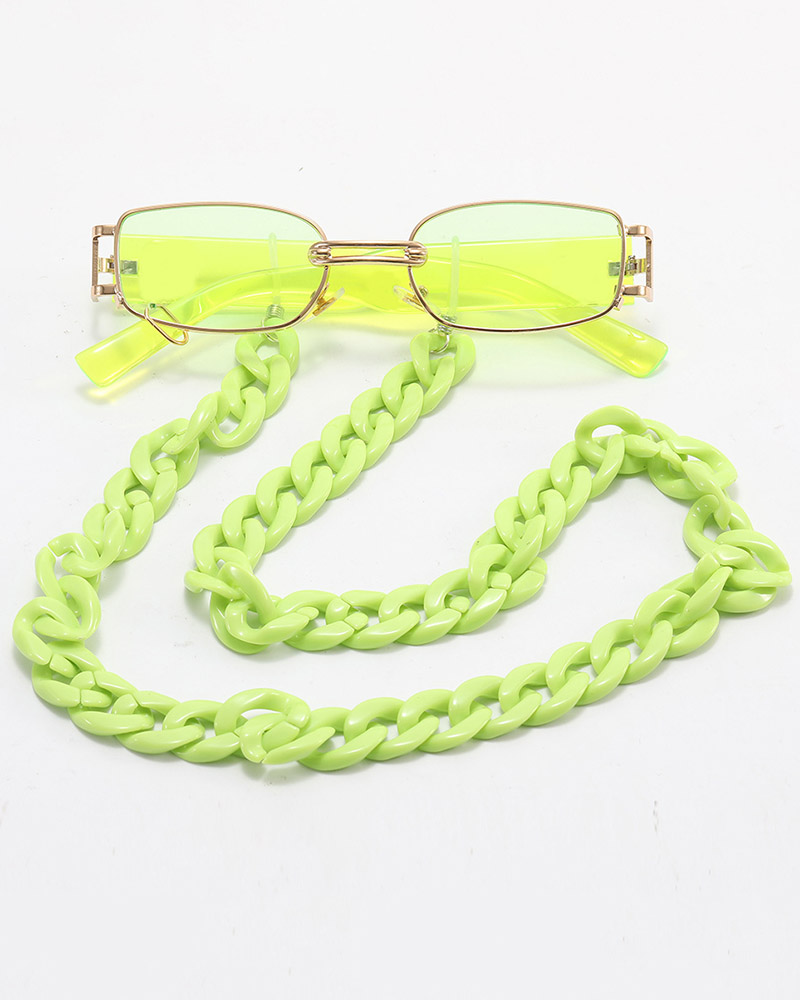 Metal Frame Chain Decor Sunglasses, Green