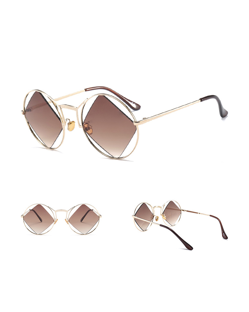 Metal Frame Round Lens Sunglasses, Coffee