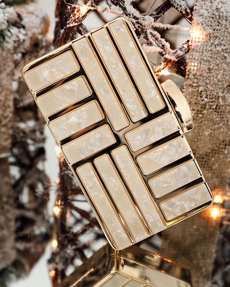 Metallic Bar Splicing Clutch Bag With Chain, Champagne