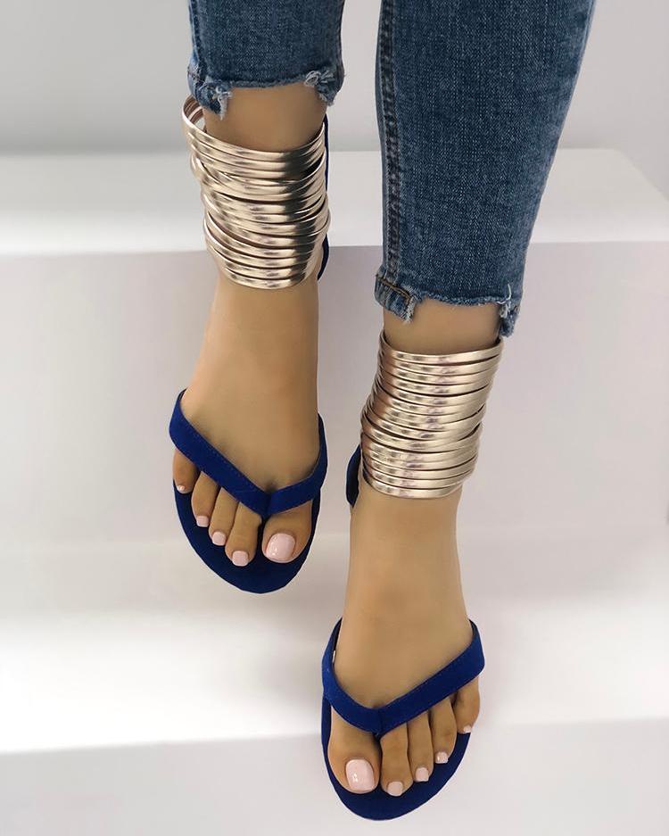Metallic Embellished Flip Flops Platform Sandals, Blue