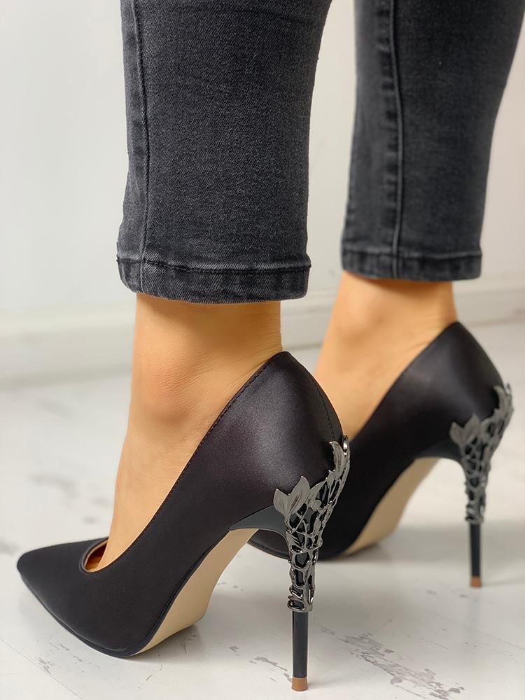Metallic Embellished Pointed Toe Heels, Black