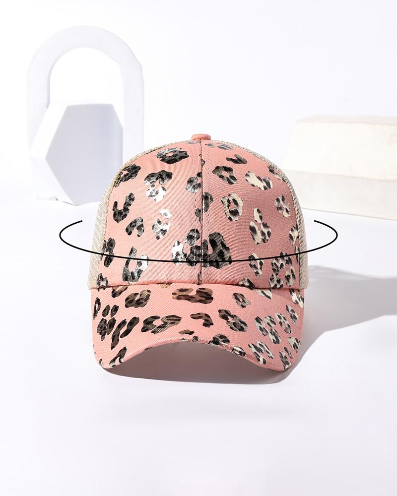 Metallic Leopard Pattern Contrast Mesh Baseball Cap, Pink